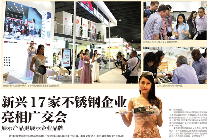 展示產品更展示企業品牌第119 屆中國進出口商品交易會(廣交會)第二期日前在廣州開幕。本屆交易會上,新興縣參展企業17 家,展位74個,參展產品均為不銹鋼餐廚用具。近年來,新興不銹鋼制造企業加強產品的設計研發,通過創新求變提升企業的品牌核心競爭力。此次廣交會上,他們自主研發的高端不銹鋼餐廚具備受國內外客商關注。對于廣交會這樣一個大舞臺,本地參展企業也有了更清晰的認知:要促成訂單交易,更要推廣企業品…