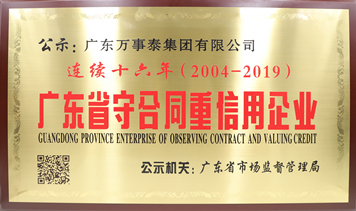 「喜訊」萬事泰集團、嘉事泰和電器公司榮獲“廣東省守合同重信用企業”稱號推薦