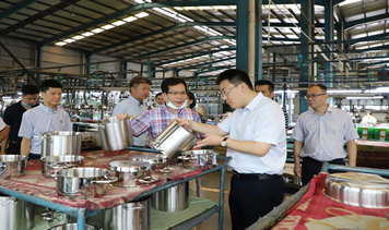 集團訊 6月19日上午,廣東省廢鋼相關(guān)協(xié)會及企業(yè)調(diào)研組一行蒞臨我司調(diào)研,萬事泰集團行政部經(jīng)理陳永錦、廚具中心黃錦釗接待并陪同調(diào)研。調(diào)研中,調(diào)研小組參觀了萬事泰生產(chǎn)車間的自動化生產(chǎn)線,詳細(xì)了解了萬事泰自動化生產(chǎn)情況,以及在廢鐵回收、加工上的工作規(guī)劃。調(diào)研組一行參觀自動化生產(chǎn)線文/圖? 陳彩環(huán)