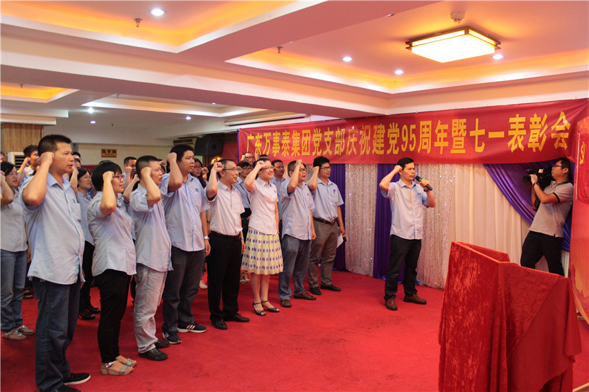 集團訊 2016年7月1日下午5點,縣委組織部副部長、縣直工委書記蘇佐英、縣委組織部黨建辦公室何四福主任、縣經貿黨委副書記陳婉華、縣經貿黨委辦公室主任莫樹佳,集團常務副總裁劉炳耀,集團全體黨員參加了萬事泰集團慶祝中國共產黨成立95周年大會。大會開始前,集團黨支部書記陳永錦領誓,新老黨員緊握右拳,面向黨旗莊嚴宣誓。重溫入黨誓詞是一次精神洗禮,讓黨員更加堅定了理想信念,作為一名新時期共產黨員,一定要繼…
