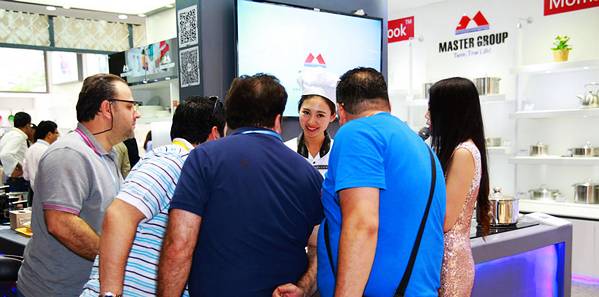 萬事泰特別策劃安排了中英雙語美女主持人與模特廚師演示一同配合的演示模式,美女廚師為往來客商演示萬事泰2015新研發的智能操控廚具,同時主持人用中英文分別介紹廚具的優勢亮點。每每介紹一開始,便吸引了大批智能廚房愛好客商駐足了解,別具吸引力。