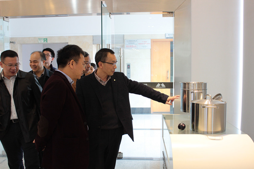 劉煒副廳長(zhǎng)一行先后參觀了萬(wàn)事泰集團(tuán)總部大樓、技術(shù)中心、生產(chǎn)事業(yè)部、檢測(cè)中心、智能廚房展廳,對(duì)集團(tuán)先進(jìn)的自動(dòng)化生產(chǎn)線,高科技的智能餐廚具產(chǎn)品進(jìn)行深入了解,高度贊揚(yáng)集團(tuán)在“產(chǎn)學(xué)研”以及科技創(chuàng)新領(lǐng)域的實(shí)踐發(fā)展。