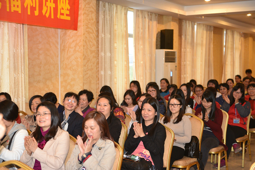 2016年3月8日下午5-6時,南豪酒店5樓1號會議廳,順德知名學者型主持人、佛山大思享文化傳播有限公司簽約講師葉琳琳女士為集團員工帶來了一場福利專題講座《讓你的工作更完美,家庭更幸福》,新興縣婦聯副主席梁翠英,新興縣經貿系統黨委副書記、工會主席陳婉華等領導出席活動,集團女員工有近百人參與,現場氣氛活躍,老師與員工進行了深入的溝通交流。新興電視臺等媒體到場報道,并對活動主策劃人、萬事泰集團工會主席梁洪光進行采訪。