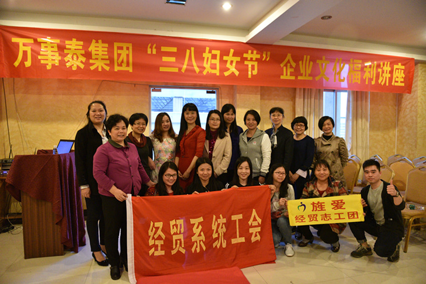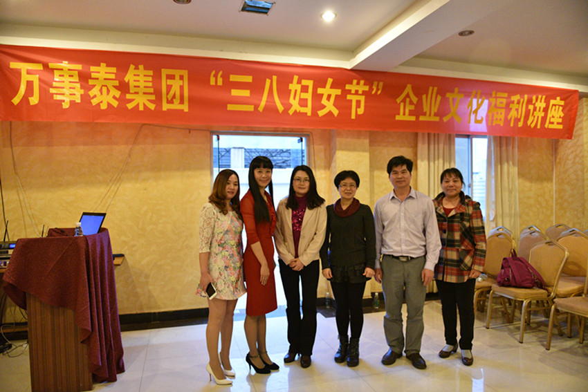 值“三八”婦女節之際,萬事泰集團專門為女員工們舉辦《讓你的工作更完美,家庭更幸福》文化講座。我覺得這次講座十分有意義。講座從如何處理好婚姻家庭關系、親子關系到職場壓力排解 等方面進行了的講演。不僅提升了女員工自身綜合素質,也進一步增強了企業的凝聚力和吸引力,希望我縣今后有更多企業多開展這類有益女職工身心健康、提升自我素質的活動。