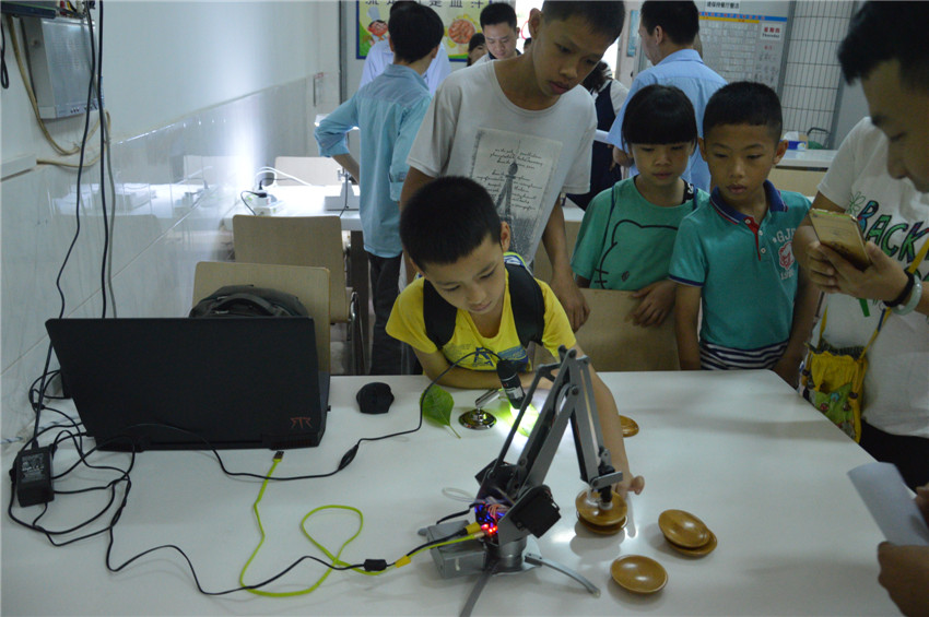 講座上現(xiàn)場(chǎng)展示了集團(tuán)先進(jìn)儀器uArm機(jī)械臂、500倍電子顯微鏡、wifi智能開關(guān)遠(yuǎn)程操作家電設(shè)備等輕松趣味又貼近生活的小環(huán)節(jié),讓小朋友們可以通過先進(jìn)的科學(xué)設(shè)備儀器和生活的有機(jī)結(jié)合,近距離感受科技改變生活的意義,培養(yǎng)科學(xué)創(chuàng)新的興趣,勇于思考、發(fā)問和表達(dá),寓教于樂。