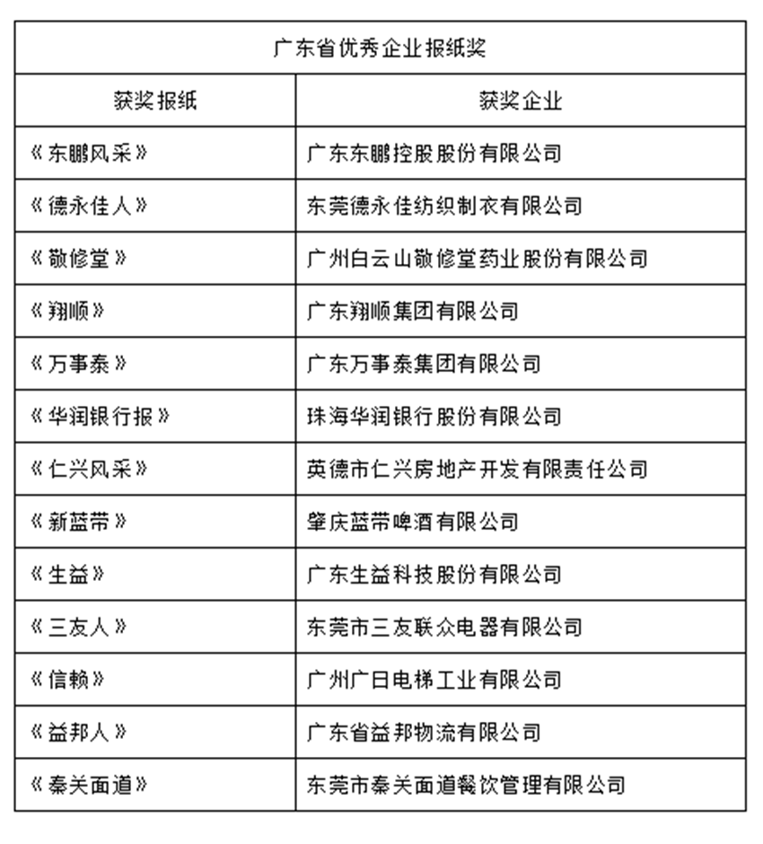 廣東省優(yōu)秀企業(yè)報紙獎獲獎名單。
