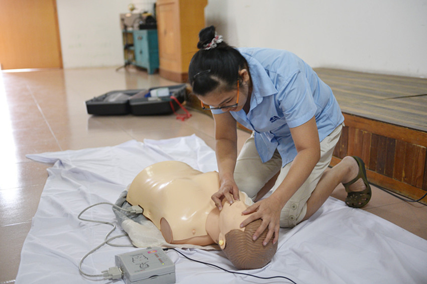 培訓會上,老師以知識宣講、圖片展示、教學短片播放、模擬操作等方式向現場學員們生動講解正確的急救知識和操作方法。理論學習過程中,學員們端坐桌前,認真聽講,不時提出自己的疑問。實踐操作中,學員們積極主動參與,并跟隨老師的示范,謹慎細致地完成每一個急救動作。學員們的課堂表現得到老師的充分認可。