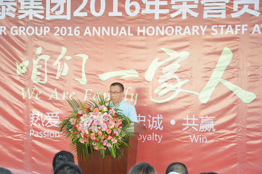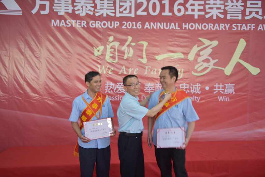 集團(tuán)訊 2016年8月26日下午4時(shí),為表彰與萬(wàn)事泰集團(tuán)風(fēng)雨兼程、恪盡職守的老員工們的奉獻(xiàn),傳承、發(fā)揚(yáng)萬(wàn)事泰“家”文化,集團(tuán)舉行了主題為“咱們一家人”的2016年度的新晉榮譽(yù)員工頒獎(jiǎng)典禮和答謝晚宴。