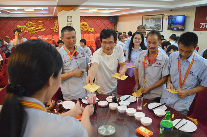 集團(tuán)董事長(zhǎng)梁桂泉現(xiàn)場(chǎng)派紅包