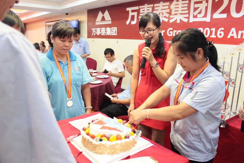 晚宴開(kāi)始前,最特殊溫情的環(huán)節(jié)出現(xiàn)了!集團(tuán)為8月生日的新晉榮譽(yù)員工慶賀生日,四位當(dāng)月過(guò)生日的老員工十分驚喜,在現(xiàn)場(chǎng)感動(dòng)得眼眶濕潤(rùn)。一位員工表示,這是她度過(guò)最特別最難忘的一個(gè)生日,在萬(wàn)事泰工作了十多年,心里很溫暖,家的溫暖,親人的溫暖,是支持她在這里扎根的重要原因。