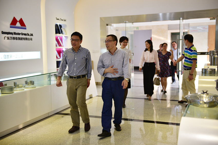 來訪嘉賓參觀了萬事泰智能廚房多功能展廳。期間,萬事泰集團常務副總裁劉炳耀詳細介紹了集團的廚具產品和小家電產品,以及集團的科技創新方向。