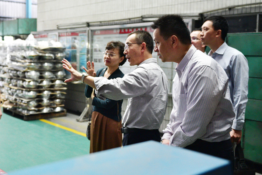 接著在劉炳耀的帶領(lǐng)下,調(diào)研組一行參觀了萬事泰生產(chǎn)車間,王月琴對集團(tuán)不銹鋼制造生產(chǎn)環(huán)節(jié)的自動(dòng)化很感興趣,對自動(dòng)砂光機(jī)、自動(dòng)拋光機(jī)提高的生產(chǎn)效率和減少用人成本的高效節(jié)能表示了高度的贊許。