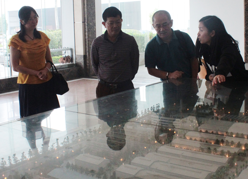 首先,講解員為調研組的領導們介紹了廠區全景沙盤模型、廠區規劃投資情況、產品業務及經營情況等。