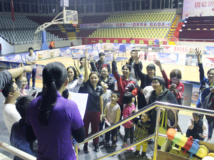 歌手李明欣為運(yùn)動(dòng)會助興演唱