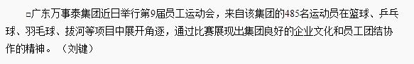 梁紹林表示體育興則事業興,運動會上運動員們所展現出的拼搏進取、團結協作精神是我們在日常工作中所不可或缺的,本身所具有的凝聚力又可以最大限度地將企業所有人員緊緊地凝聚在一起,展現出強大的戰斗力。希望萬事泰集團全體員工能夠發揚體育精神,在本屆運動會中,賽出成績,賽出水平,賽出風格。