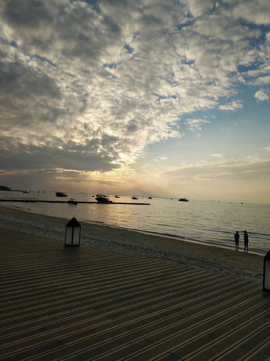 評委點評:淡淡的夕陽,最后的光輝,云朵的影子很漂亮,兩個人在海邊踏浪,天高地闊,人在大自然中是何等的渺小。