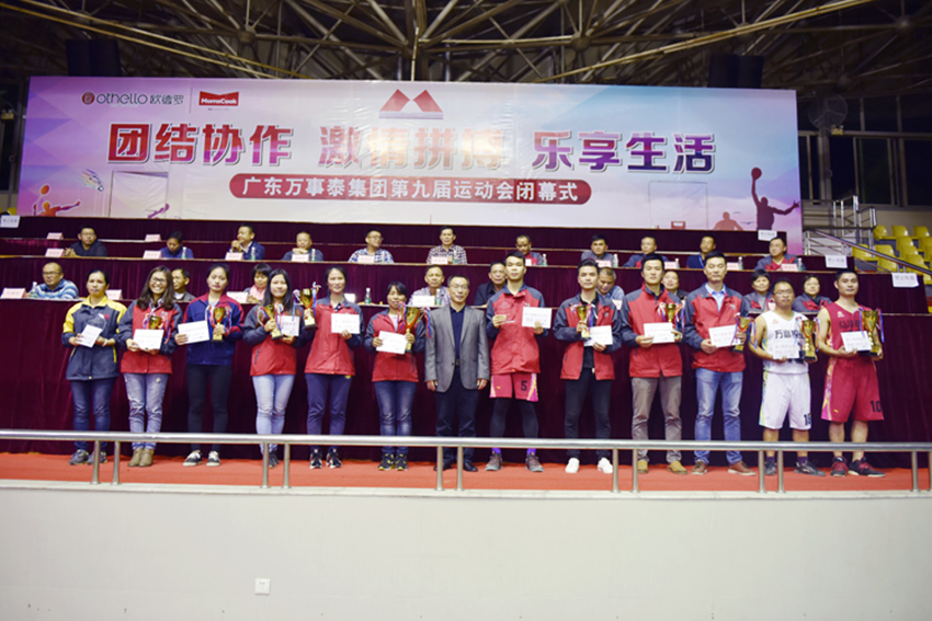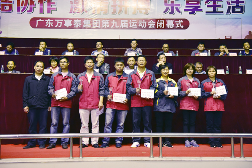 最后,由萬事泰集團常務副總裁劉炳耀發表講話,并宣布廣東萬事泰集團第九屆員工運動會勝利閉幕:運動會的圓滿成功,充分展示了公司員工勇于拼搏、團結協作、敢于競爭、奮發超越的精神風貌,它將成為萬事泰集團一筆寶貴的精神財富,激勵我們在工作中和生活中增強凝聚力和向心力,形成互敬互愛互助的集團家文化。希望集團的每一位員工能夠把這種精神延伸到工作中去,守土有責地貢獻自己的力量,為實現公司的戰略目標而努力奮斗。
