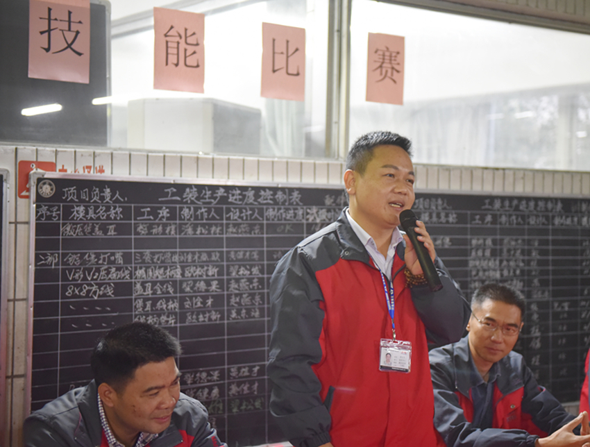 本次大賽共有8名選手參加,分別有:高級技工余廣雄,鉗工陳健勇、劉金才、歐樹新、梁德果、歐國長、潘松林、歐國慶。本著公平、公正、公開的原則,8名選手通過抽簽方式?jīng)Q定出賽順序。由技術總監(jiān)黎健泉、孔萌,項目經(jīng)理劉克漢、陳子一、羅思聰、梁炎明,工藝技術科長蘇樹鎮(zhèn),以及工藝工程師陳樹清擔任評委。