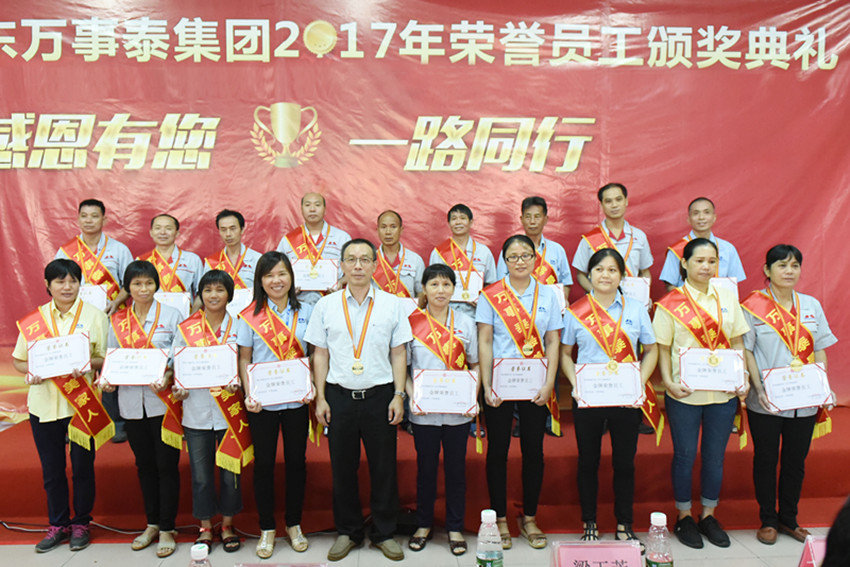 今年以來,外部經濟環境急劇變化、行業競爭愈發激烈,在全體萬事泰員工齊心協力的支持下,萬事泰總體生產經營情況呈現出良好發展勢頭,各項工作也可謂亮點頻頻:先后榮獲國際著名設計大獎—德國iF獎、“中國出口質量安全示范企業”稱號等,更是一舉入選為“2017阿斯塔納世博會”中國館廣東活動周專門紀念品指定供應商,成績來之不易,萬事泰希望與所有員工繼續攜手奮進,共同為實現萬事泰集團的藍圖目標而不懈努力!