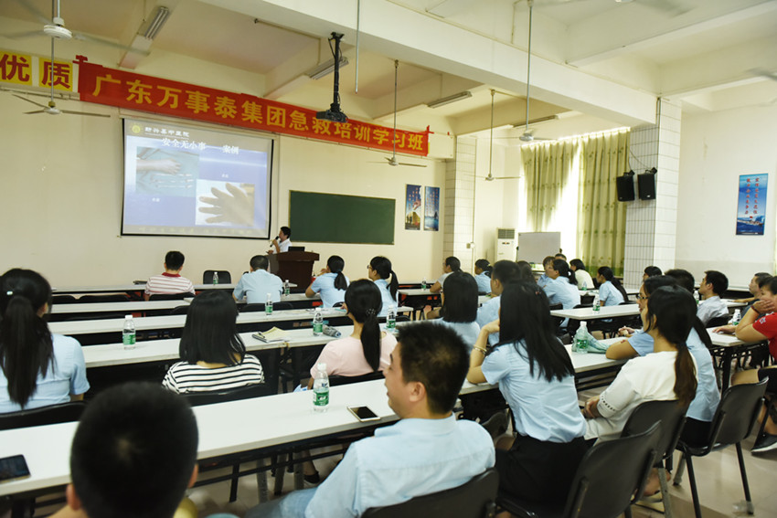 集團(tuán)訊 9月14日下午,萬事泰集團(tuán)貫徹“安全第一、預(yù)防為主、綜合治理”的健康、安全方針,特聯(lián)合新興縣中醫(yī)院在總部食堂三樓培訓(xùn)室開展企業(yè)急救培訓(xùn)班課程,集團(tuán)各部門代表共50多人參加。