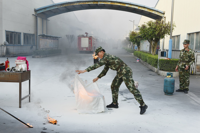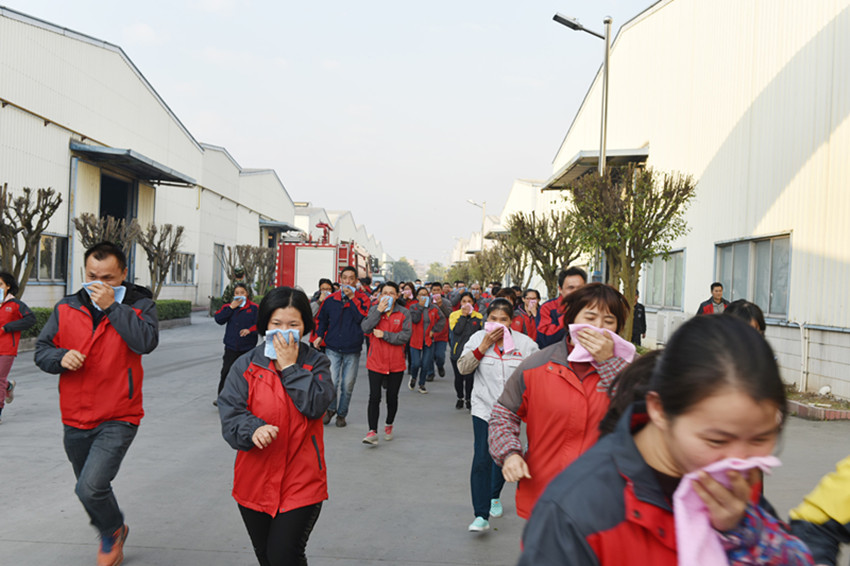 演練前,新興縣消防官兵耐心為萬事泰員工講解火災的預防、逃生自救技能和滅火器等消防器材使用的消防知識,指出員工在演練過程中應該注意的事項和錯誤之處,使員工進一步了解一旦火災發生如何報警、正確撲救、自救和逃生等技能。隨后,展開了演練實操,員工在消防官兵的指導下,手捂濕毛巾,井然有序的、迅速的撤離到安全地帶。