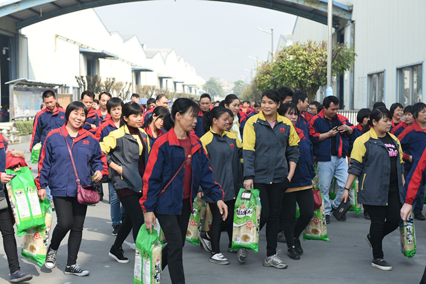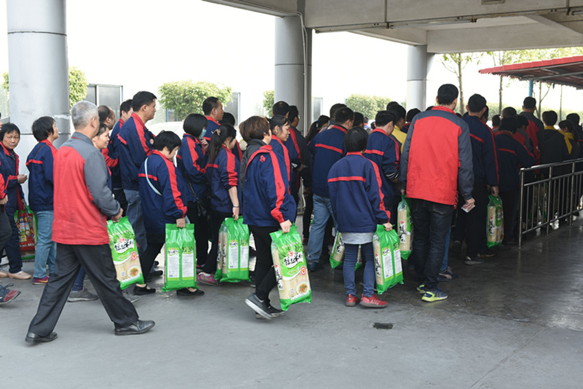在福利發(fā)放現(xiàn)場,2000余名職工排起了一條井然有序的隊伍,一天忙碌的工作后,領(lǐng)取到福利的員工笑逐顏開,現(xiàn)場氛圍其樂融融。