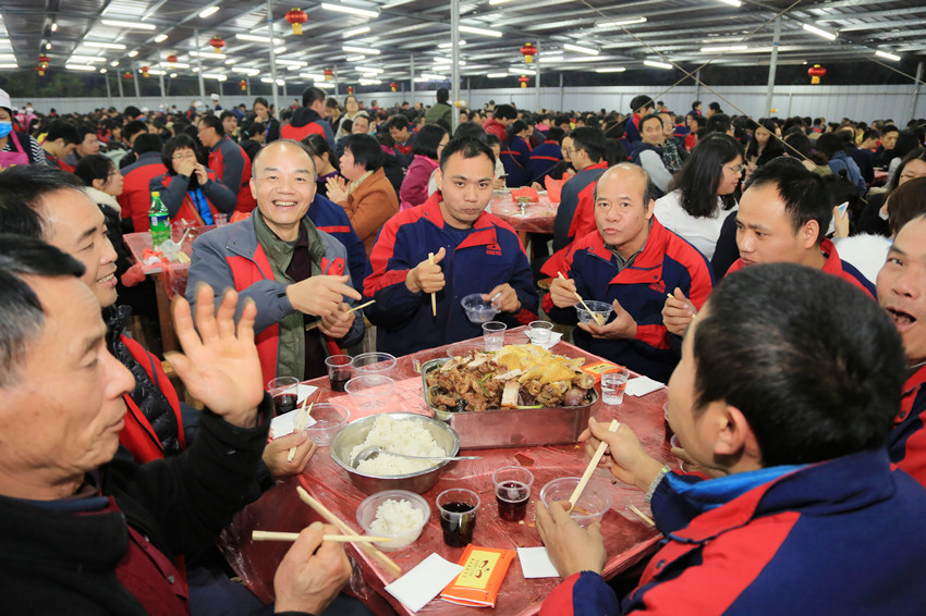 在梁董、劉總的祝酒聲中,大家聚集在一起,同品百家菜、共吃一鍋飯,共敘家長(zhǎng)里短,歡聲笑語(yǔ)中,溢出的是濃濃的幸福味。