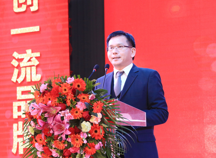 萬事泰集團(tuán)董事長(zhǎng)梁桂泉作晚會(huì)致辭,給大家?guī)硇履甑膯柡蚺c祝福。