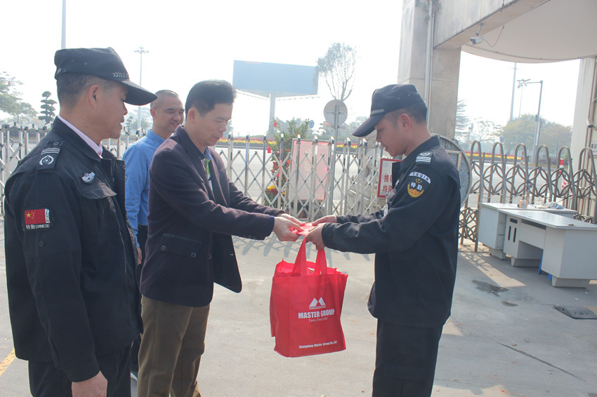集團訊 2018年2月16日,萬事泰集團黨支部書記、行政部經理陳永錦受集團董事長梁桂泉和常務副總裁劉炳耀的委托前來看望慰問仍然堅守崗位的值班員工,并代表集團送上節日祝福和新春慰問禮品,同時也對他們在春節期間仍堅守崗位表示感謝。