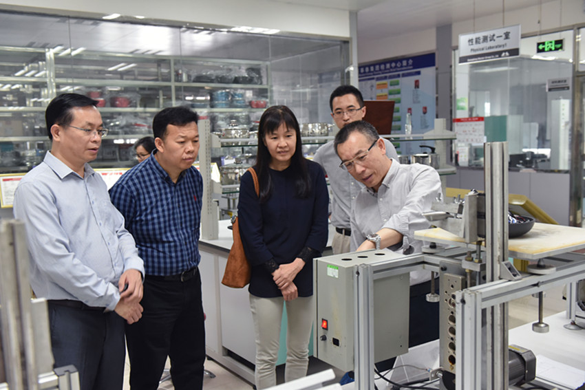 調研組一行在集團副總裁劉炳耀帶領下,先后參觀我司的智能整體廚房展廳、檢測中心、技術中心和生產車間。調研中,調研組一行認真聽取了劉總對集團的發展歷程、發展規模以及技術創新成果和優質產品等介紹,并詳細了解了集團產品的生產工序、工藝及技術情況。
