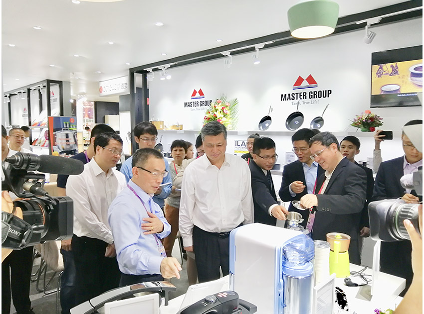 馬省長一行在梁董、劉總的陪同下,先后參觀了萬事泰歐德羅品牌展區(qū)以及國際業(yè)務(wù)專區(qū),詳細了解我司參展情況,并關(guān)心詢問了我司近年來的發(fā)展情況和在轉(zhuǎn)型升級方面的進展情況。劉總向馬省長介紹了萬事泰參加本屆廣交會的最新智能產(chǎn)品:智能壓力鍋、智能沖奶機、多功能磨刀機,以及萬事泰入選2017年阿斯塔納世博會專用紀念品——4D超導(dǎo)系列產(chǎn)品等產(chǎn)品,并代表集團向馬省長等領(lǐng)導(dǎo)做了匯報。