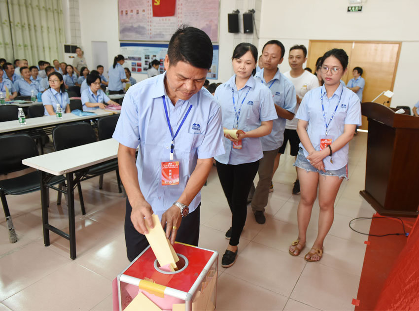 隨后,會員代表們以無記名投票選舉方法,選舉出新一屆工會委員會成員。梁洪光當選為工會主席,梁賢武、梁志權、蘇瑞萍當選為工會副主席;梁錦添當選為經費審查委會主任;溫文翠當選為女職工委員會主任;練美英當選為組織生活委員會主任;歐淑慧當選為文體宣傳委員會主任;李輝漢當選為勞動監察與調解委員會主任。