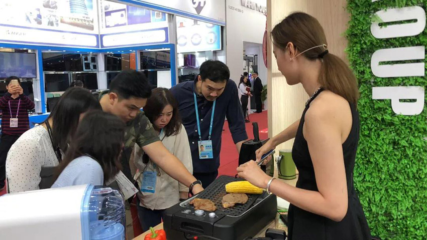 本次參展,電器公司重點(diǎn)推出燒烤類、磨刀類、奶泡機(jī)類和嬰兒用品類小家電產(chǎn)品。其中,燒烤類的無煙電烤盤一經(jīng)推出,就收到了大量客戶的詢價。客戶們對它產(chǎn)生了濃厚的興趣。這個電烤盤采用的是堆疊式設(shè)計(jì),使安裝更簡易,清洗更方便。它通過內(nèi)置的風(fēng)扇及濾網(wǎng)能最大程度地消除燒烤時產(chǎn)生的油煙,適用于廚房、客廳、辦公室,甚至臥室等各種室內(nèi)環(huán)境,讓人們隨時隨地享受燒烤的樂趣,同時又能避免滿屋油煙的困擾。
