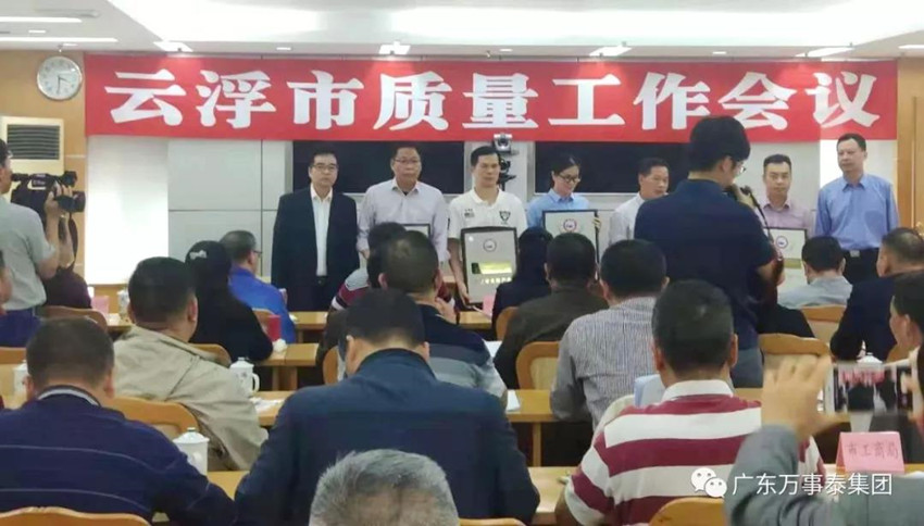 集團訊 12月5日下午,云浮市質量工作會議在市行政中心舉辦,會上對獲得2017年廣東省名牌產品稱號企業授予牌匾。萬事泰行政部經理陳永錦參加了本次會議并接受授牌。