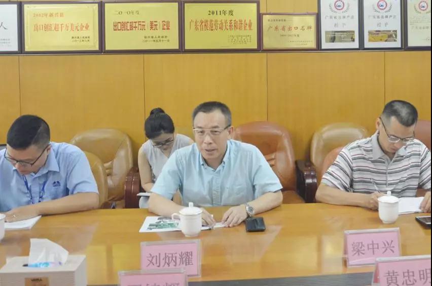 6月26日,云浮市市人社局羅錦輝副局長一行蒞臨我司考察調(diào)研博士、博士后載體相關(guān)工作,新興縣人社局局長林慶武等縣領(lǐng)導陪同調(diào)研。萬事泰常務(wù)副總裁劉炳耀、總裁辦歐劍華、人力資源部經(jīng)理梁中興、研究所陳健博士等集團領(lǐng)導熱情接待并陪同。