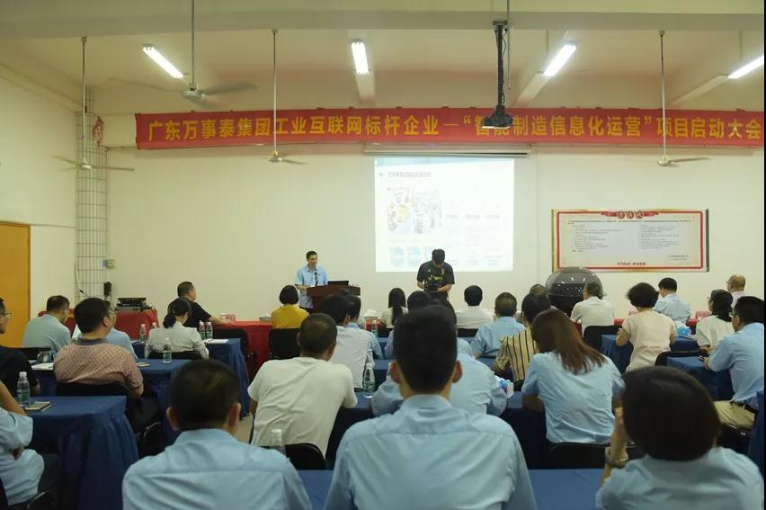 集團訊 8月15日,廣東萬事泰集團工業互聯網標桿企業——“智能制造信息化運營”項目啟動大會在集團培訓室隆重舉行。云浮市工信局副局長胡立新、工業互聯網科科長李慧恒、新興縣工信局副局長劉田英等領導應邀出席。萬事泰集團董事長梁桂泉、常務副總裁劉炳耀,以及合作方鼎捷軟件公司營運長劉波、總經理許嘉易出席了啟動大會。集團各部門負責人與項目相關人員、鼎捷公司專家團隊等100多人共同見證了儀式。會議由集團總裁辦主任梁賢武主持。