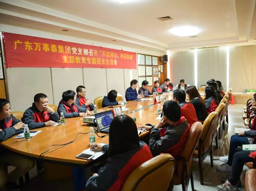 萬事泰黨支部按照縣委主題教育的統一部署召開了“不忘初心、牢記使命”主題教育專題民主生活會。黨支部委員、各科室黨員參加了會議。會議由黨支部書記陳永錦主持。