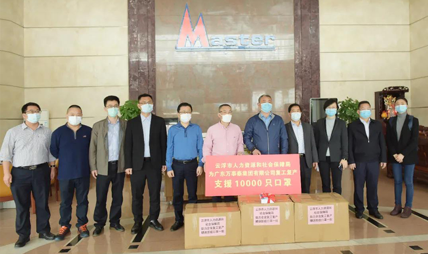最后由云浮市人社部門贈送我司防疫口罩10000只,以助力企業復工復產。