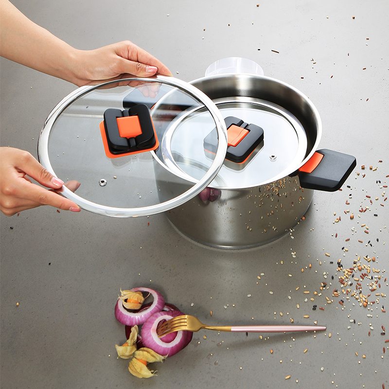 魔術系列是一款收納性強,功能強大,性價比高的鍋具套裝。蓋耳和煲耳運用韌性極強的尼龍材質,通過巧妙的結構設計創新性地使煲耳和蓋耳可以折疊收納,使20規格的鍋具可完全收納于24規格的鍋具之內,在外觀上看,只有一個24規格的鍋具,就像變魔術一樣。大大提高收納性能,通過數據分析,整整節省了40%的空間。煲身采用安全無毒抗腐蝕的食品級304材質,鍋底適應多種爐灶,鍋蓋采用平板鋼化透明可視玻璃蓋,對食物的生熟一目了然。