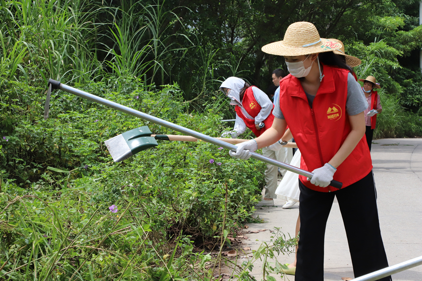 掃把、垃圾鏟、鐵鏟、鋤頭,這些簡(jiǎn)單的清掃工具是萬(wàn)事泰“美容師”最得力的助手,雜草、紙屑皆是他們的“眼中釘”。他們頂著高溫,無(wú)懼臟累,對(duì)轄區(qū)內(nèi)的垃圾、雜物展開(kāi)集中清理。在烈日下,他們熱情高漲,使勁揮著手里的鋤頭,豆大的汗滴流過(guò)臉龐,濕透了衣裳,過(guò)路的行人紛紛投來(lái)敬佩的眼神。他們用自己的雙手為附近居民創(chuàng)造了一個(gè)干凈整潔的生活環(huán)境,營(yíng)造了良好的社會(huì)風(fēng)氣。