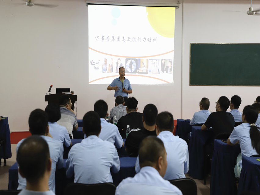 為提高公司管理人員的管理能力、執行力及工作效率,營造積極向上的文化氛圍,提高員工業務水平和業務素質,增強企業競爭能力。8月21日下午,萬事泰集團特邀請廣東工業大學管理學院教授惠青山來開展《高效執行力》專題培訓,集團各部門中高層管理人員參加了此次培訓。