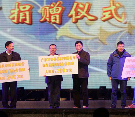 在新興一中百年慶典之際,新興縣成立新州教育基金會(huì),在19日舉行的捐贈(zèng)儀式上,教育基金會(huì)收到來自多家企事業(yè)單位和個(gè)人的捐資。 截至目前,基金會(huì)已收到募捐資金2500多萬元。其中,萬事泰集團(tuán)捐贈(zèng)200萬元。