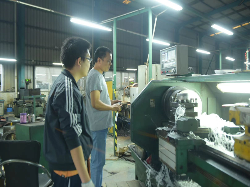走進工程部模具車間,簡輝全師傅正語重心長教導徒弟陳星宇:“在學習技藝之前,更重要的是先學會安全生產,正規操作,學任何技術都不能急于求進,必須先穩扎基礎。”簡輝全師傅帶著陳星宇學習理論知識之余,更是展開系列實操教學,用自身扎實的技能教會徒弟熟悉車床,學會編程,對工作中容易出現的技術問題和薄弱環節進行精心指導。