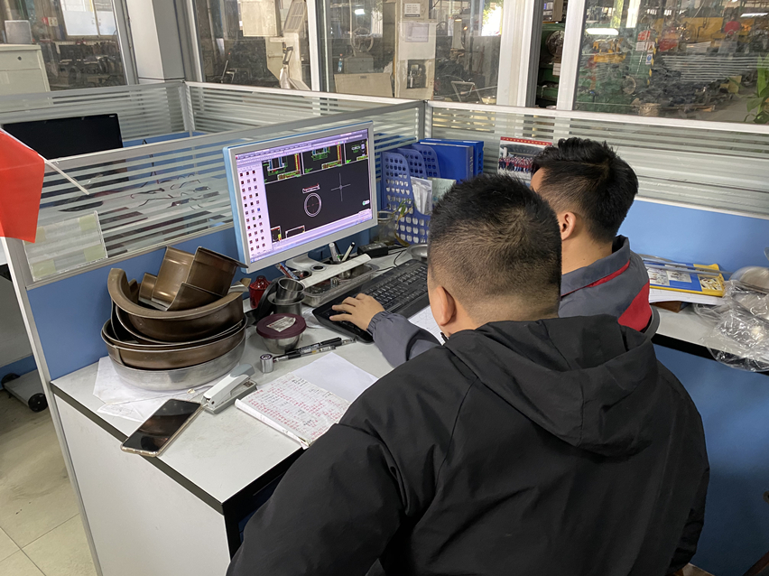 經過工程部辦公室,傳來一陣教學的聲音:“模型這里分開標數,這些數據代表......”走進一看,是一對師徒正在描繪著圖紙,交流著CAD操作技術。師傅陳偉強用高標準、嚴要求的原則教導徒弟,言傳身教地帶領徒弟在萬事泰一步步前進。