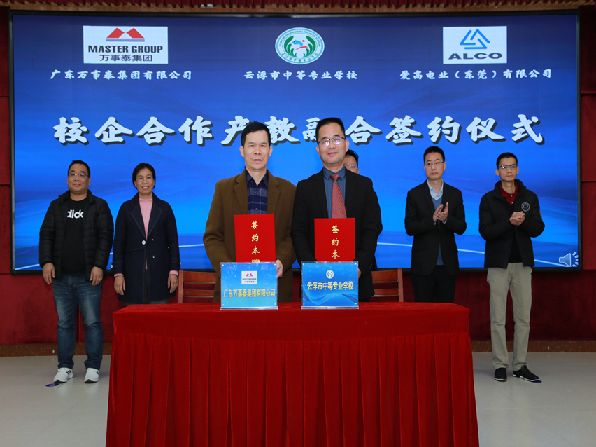 集團訊 12月23日,萬事泰集團與云浮市中等專業學校隆重舉行了校企合作簽約儀式。萬事泰集團人力資源中心副總監趙帆、行政部經理陳永錦、云浮市中等專業學校領導及部分師生代表參加了此次簽約儀式。儀式由云浮市中等專業學校黨委副書記朱成豹主持。
