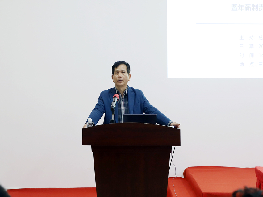 萬事泰集團此次部署部門負(fù)責(zé)人級年薪制改革,先行試點萬事泰旗下電器子公司和精密鑄造事業(yè)部。會上,集團董秘辦董秘楊松對部門負(fù)責(zé)人年薪制進行了詳細(xì)的分析解讀。
