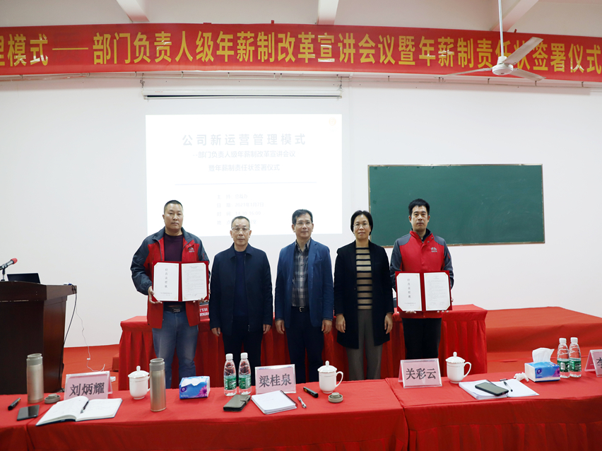 集團訊 1月7日下午,為適應(yīng)新運營管理模式,提升內(nèi)部管理水平,萬事泰集團在總部三樓培訓(xùn)室召開新運營管理模式——部門負(fù)責(zé)人級年薪制改革宣講會議暨年薪制責(zé)任狀簽署儀式,集團各部門/科室負(fù)責(zé)人、車間主任、中高層管理人員參加會議,集團董事長梁桂泉、執(zhí)行總裁劉炳耀等領(lǐng)導(dǎo)出席了會議。會議由集團總裁辦主任梁賢武主持。