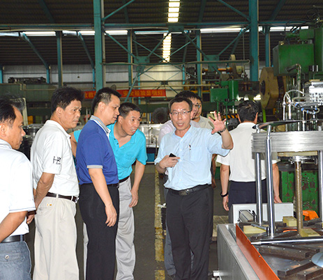 萬事泰集團常務副總裁劉炳耀等集團領導陪同驗收專家組一行先后來到技術中心、沖壓車間、產品檢測中心以及成品展示室考察創新能力平臺建設情況,劉副總裁在一旁為專家組成員詳細介紹萬事泰的建設成果。