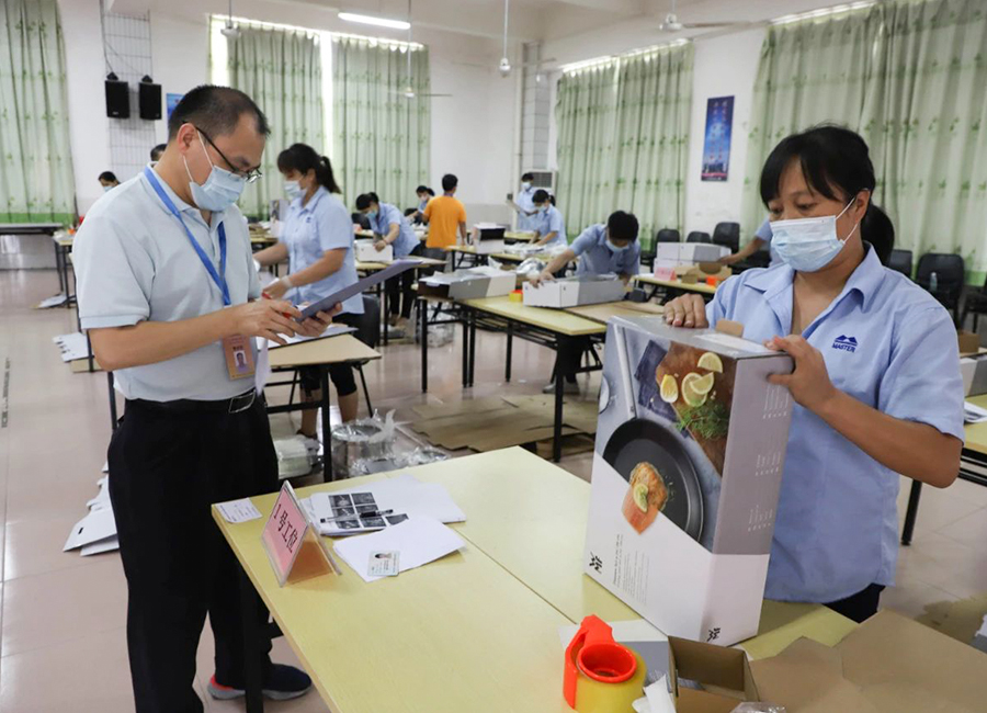 萬事泰集團(tuán)業(yè)技能等級認(rèn)定工作委員會副主任陳永錦表示,在堅持公正,公平,公開的原則,嚴(yán)格落實技能等級認(rèn)定考試相關(guān)制度、工作流程及程序,本次認(rèn)定考核,分為理論考試及技能實操考核,對應(yīng)考查應(yīng)考人員的專業(yè)知識和技能操作水平。在實操考核現(xiàn)場,小編看到考試區(qū)域擺放有已拆分的產(chǎn)品彩盒包裝,應(yīng)考人員需按照規(guī)定以及根據(jù)不同產(chǎn)品特性,快速整理進(jìn)行包裝。