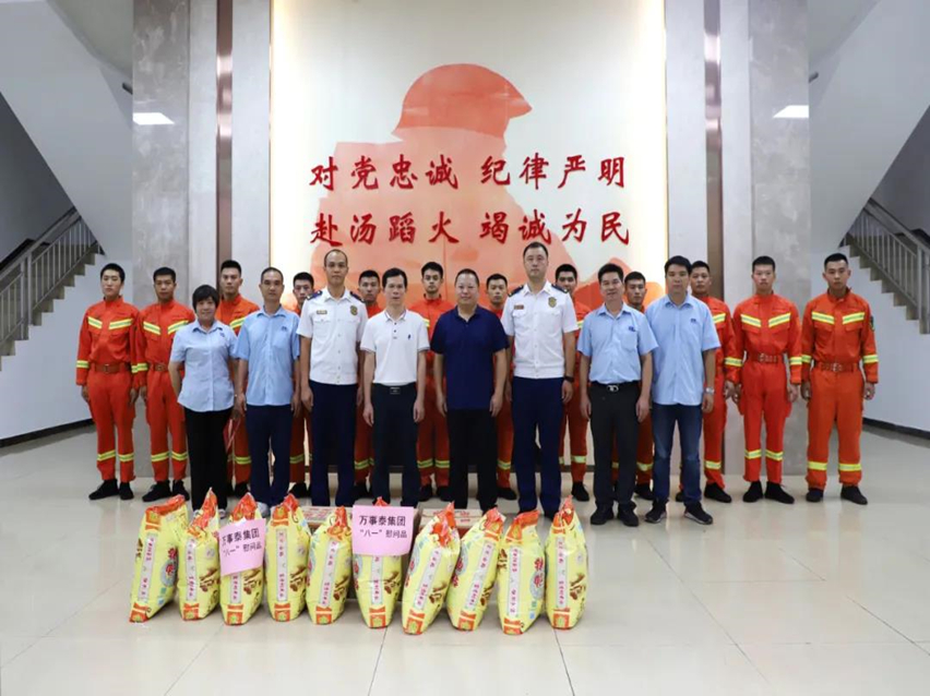 集團訊 7月29日,在“八一”建軍節到來之際,萬事泰集團總裁辦主任梁賢武,行政部總監陳永錦,黨支部書記、工會主席梁洪光一行先后來到新興縣武裝部、消防大隊進行走訪慰問,共慶中國人民解放軍建軍節,并為官兵們送去節日慰問品。
